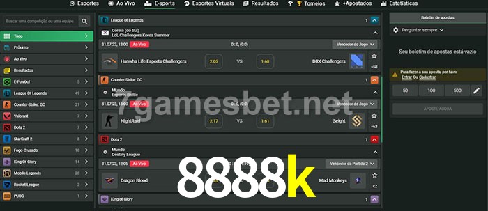 A aposta 8888k oferece aos jogadores a experiência mais conveniente de apostas em eSports!